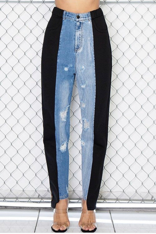 Carla Double Layer Tie-Dye Distressed Wide-Leg Jeans for Women