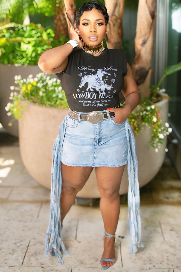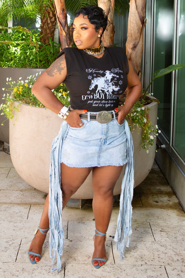 Dolly Denim Dreams Tulle Trim Skirt Set – Girls’ Cowgirl Chic 2-Piece Outfit